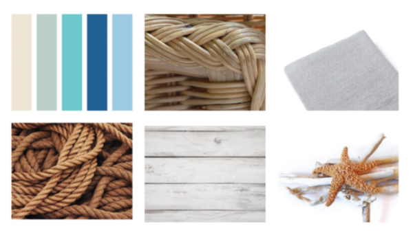 Dans la palette de couleurs on aura des tons de blanc, beige, bleu, vert pastel.