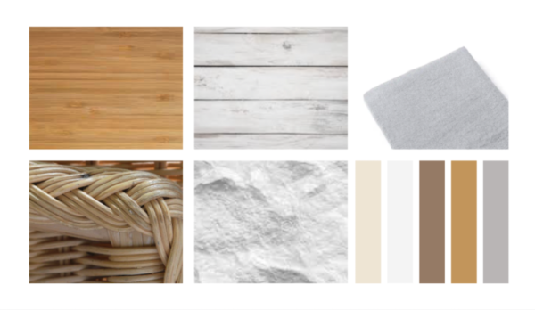 Dans la palette de couleurs on aura des tons de blanc, beige, bleu, vert pastel.
