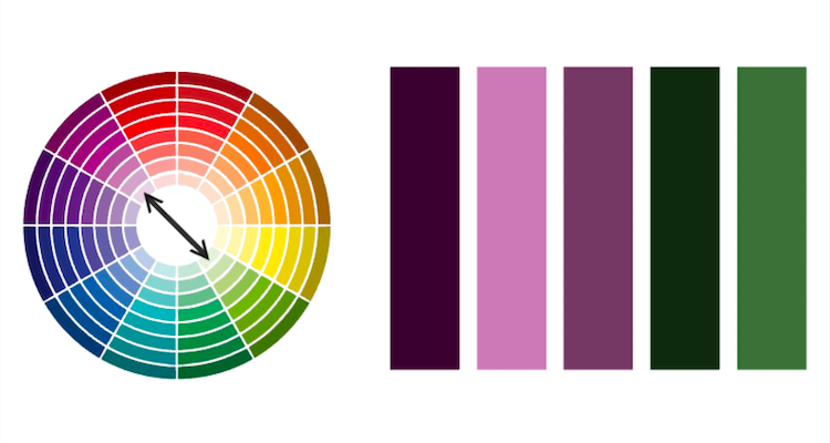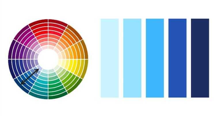 Le dégradé ou monochrome consiste à décliner une même couleur en teinte plus ou moins claire ou saturée.